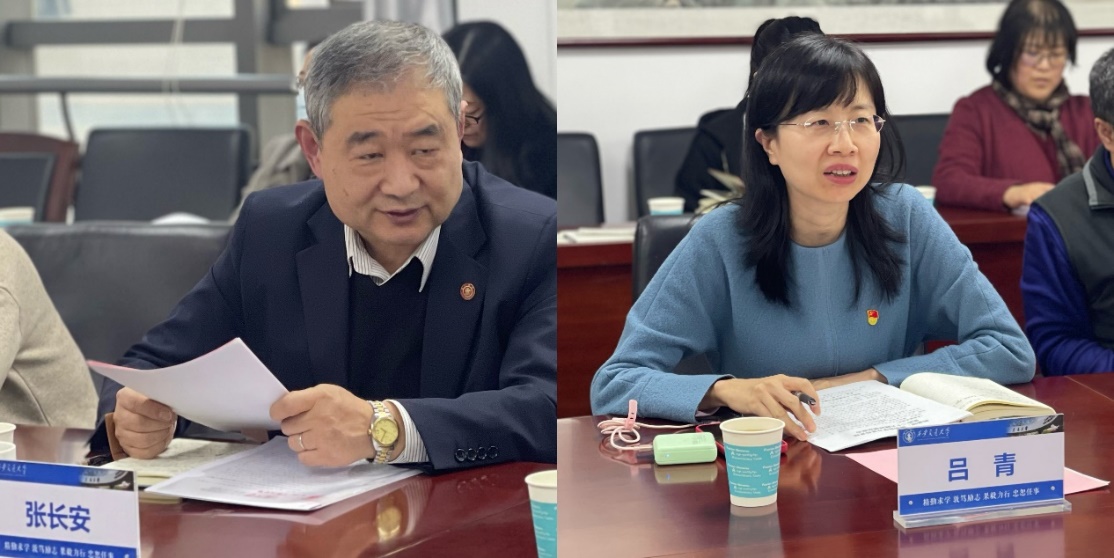 会上,张长安介绍外国语学院党委学习宣传贯彻党的二十大精神开展情况以及下一步的工作计划安排,学院党委将抓好领导干部和党团组织的学习培训,将党的二十大精神进教材、进课堂、进头脑,邀请校内外专家集中开展理论宣讲活动,开设专栏精心组织新闻宣传,大力支持专家学者和党团组织深入开展研究阐释。档案馆、博物馆馆长吕青介绍本单位学习宣传贯彻党的二十大精神开展情况,在学习方面,聚焦“集中学”、“重点学”、“联合学”,深化业务+党建模式,进一步引导党员学深悟透党的二十大精神,强化使命担当;在宣传方面,发挥场馆阵地优势营造学习氛围,用青年视角讲好党的创新理论,运用“云传播”手段拓展宣传实效;在落实方面,从规范化管理、特色化发展、信息化提升和专业化队伍等方面做好档案文博工作,推动贯彻落实党的二十大精神取得实效。