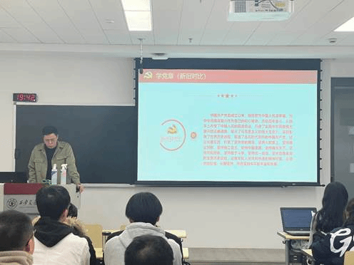 电气学院纪凯龙通过播放视频领学中国共产党章程,并表示“雄关漫道真如铁,而今迈步从头越”,我们要总结经验,不忘初心,坚持党的领导,继续奋斗,取得更大的成功!