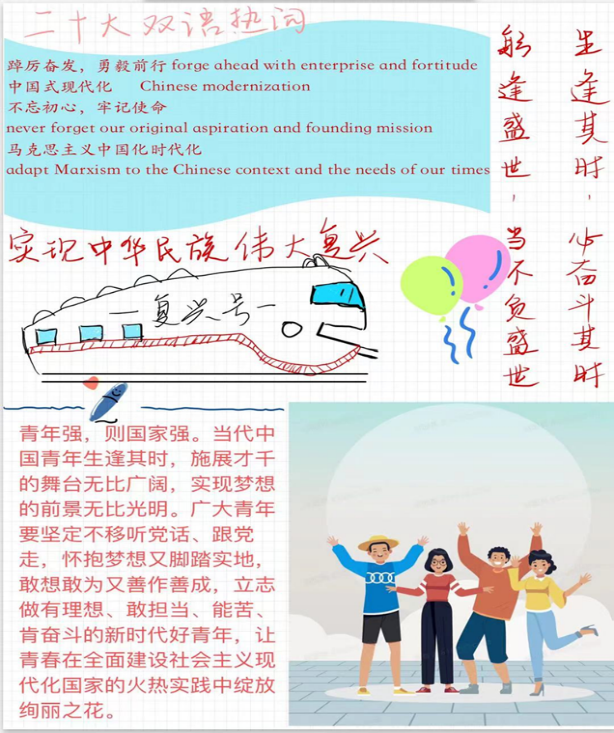 本次活动通过制作手账、拼贴诗、海报、视频等形式,展现了丰富多样的学习形式,党员以切实行动学习党的二十大精神,传递青年之声,抒发爱党爱国情怀,积极响应党的二十大号召!