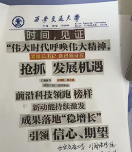 党员刘波用一幅海报激励同学们自信自强、守正创新、踔厉奋发、勇毅前行。海报题为《自信自强、守正创新》,背景是天安门,象征中国共产党始终坚持以人民为中心的执政理念,为实现中华民族伟大复兴的伟大事业而不懈奋斗。自信自强、守正创新,是我们党克服艰难险阻、创造历史伟业的重要原因,也是奋进新征程、创造新的更大胜利的强大精神力量。