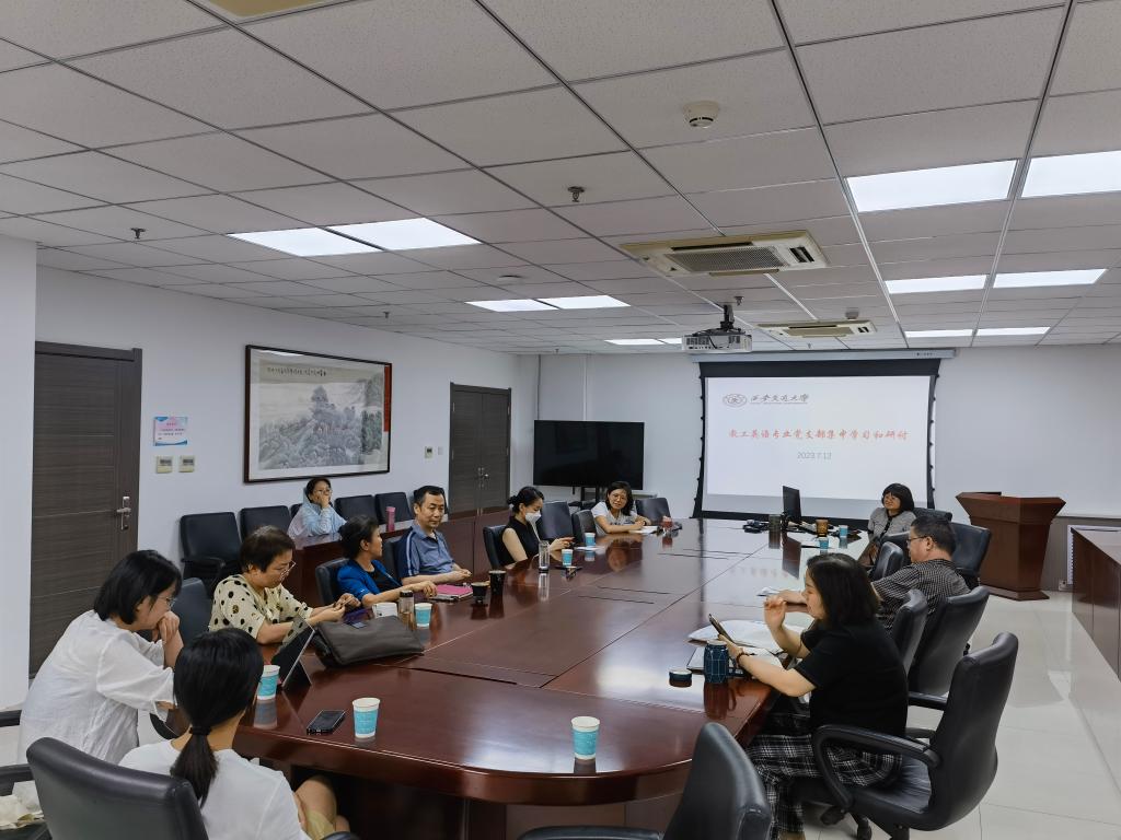 7月12日下午,教工英语专业党支部在外文楼B912会议室开展集中理论学习,研讨英语专业发展工作。