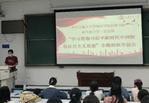 为深入学习习近平新时代中国特色社会主义思想,更好地组织开展新学期党支部工作,9月12日中午,西安交通大学外国语学院彭康书院师生联合第一党支部开展了“学习贯彻习近平新时代中国特色社会主义思想”专题组织生活会,外国语学院党委副书记许明、组织员徐阳以及党支部全体成员参加此次活动。会议由支部副书记嵇雨轩主持。