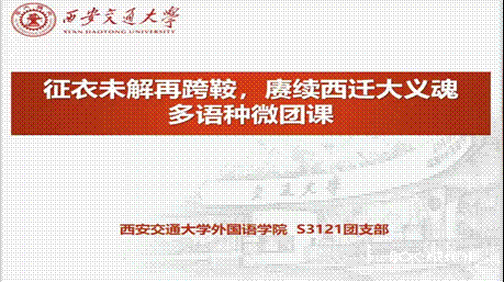 为了加深支部成员对西迁精神深刻内涵的理解,促进西迁精神的国际化传播,西安交通大学外国语学院S3121班团支部结合支部成员外语语言优势,分中文、英语、日语、西班牙语、法语、俄语六个语种录制了“讲好西迁故事”多语种微团课。录制过程中,同学们运用自己的专业技能,反复揣摩用语用句,精益求精,激情澎湃,用“声”讲述使命感召,用“情”感受西迁故事,用“行”传承西迁精神。