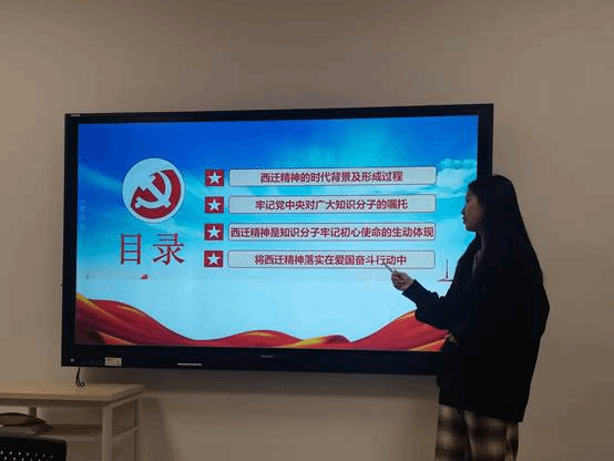 S3123团支部书记庄可意带领支部成员对西迁精神进行了学习,包括西迁精神的时代背景及形成过程、党中央对广大知识分子的嘱托、在知识分子牢记初心使命上的生动体现,以及如何将西迁精神落实在爱国奋斗行动中。经过本次学习,支部成员们对西迁精神进行了温习,也有了新的体会。
