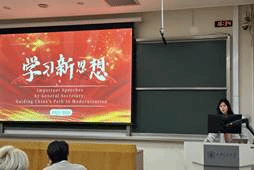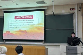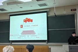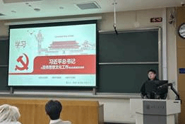 接下来,楚思齐同志做出以“学习新思想——习近平总书记重要讲话”为主题的英文展示。楚思齐同志展示了《推进中国式现代化需要处理好若干重大关系》所强调的要促进经济发展与环境保护相结合的重要性,解释了习近平总书记重要指示中的坚持文化自信的重要内容,以及积极参与世界贸易组织改革和提高驾驭高水平对外开放能力的重要性,阐述了二十届中央纪委二次全会的精神,以及以全面从严治党引领保障高校高质量发展的必要性。