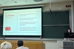 首先,朱佳一同志做出以“学习习近平总书记近期系列重要讲话精神”为主题的中文展示。朱佳一同志向全体成员展示了《推进中国式现代化需要处理好若干重大关系》的学习内容,包括顶层设计与实践探索的关系、战略与策略的关系、守正与创新的关系、效率与公平的关系、活力与秩序的关系、自立自强与对外开放的关系,强调了习近平文化思想中的“七个着力”,解释了积极参与世界贸易组织改革的重要性和紧迫性,并说明了开展廉政教育专题学习需要读懂历史,看清现状,扛起责任,当好表率。