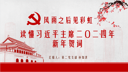 首先,支部全体成员共同观看视频学习近平总书记2024新年贺词。在新年贺词中,习近平主席与全国人民一道,回顾过去一年接续奋斗、砥砺前行的历程,展望新一年的美好蓝图、使命担当。习近平主席为过去一年各行各业挥洒汗水、作出贡献的人们点赞,并指出,人民永远是我们战胜一切困难挑战的最大依靠。今天的中国,处处是拼搏奋斗的身影,处处是日新月异的创造。