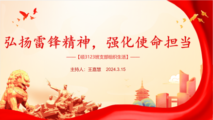 2024年3月15日上午9点,外国语学院硕3123班党支部在涵英楼5077会议室召开“弘扬雷锋精神,强化使命担当”专题党员大会。会议由支部书记王嘉慧主持,支部全体党员参会。