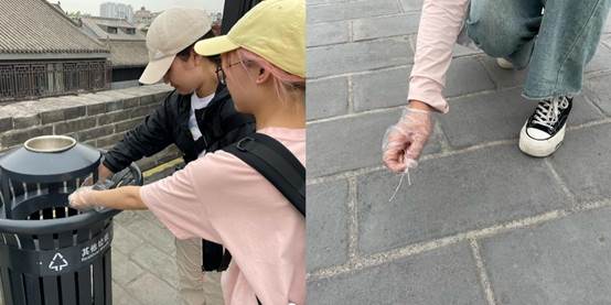 此次研学除了历史文化的交流,也注重培养大家保护历史遗产的可持续发展观念。大家积极参与城墙环境维护活动,制止了在城墙上刻字的游客;自备环保袋,一起在城墙上巡视,捡拾起地上的废弃物。这个活动不仅提升了各位同学的环保意识,也为保护西安古城墙的环境创造了良好的条件。