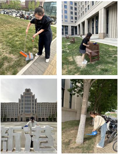 最后,支部成员知行合一,走进校园各个角落,展开了一场环保实践活动。大家擦拭排椅、给树浇水、清扫草坪、擦拭雕塑,为校园增添了一道亮丽的风景线。