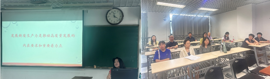 6月5日,大学英语拓展教研室党支部召开组织生活,深入学习并讨论《求是》杂志发表的习近平总书记重要文章《发展新质生产力是推动高质量发展的内在要求和重要着力点》。此次学习是大英拓展教研室党支部“党课大家讲、人人做老师”活动的第三讲,主讲人为支部党员、大学英语拓展教研室副主任陈丽。