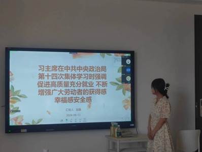 支部成员郑乔尹学习新质生产力相关理论后谈到:“通过学习,我了解到新质生产力的发展离不开创新驱动。无论是科技创新、管理创新,还是模式创新,都需要我们具备开拓思维,勇于突破传统观念的束缚。特别是在当前全球化和信息化高度融合的背景下,我们必须具备全球视野和战略眼光,善于借鉴国际先进经验,同时立足本土实际,形成具有中国特色的新质生产力发展路径。”张嘉行同学则对高质量就业有所感悟:“通过这次学习,我更加深刻地认识到促进高质量就业的紧迫性和重要性。只有通过多方努力,共同推动教育培训、创新创业、政策支持等方面的工作,才能真正实现高质量就业,为经济社会的可持续发展奠定坚实基础。我相信,在全社会的共同努力下,我们一定能够实现这一目标,让更多人享有体面的工作和美好的生活。”