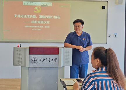 为突出仪式教育对团员和青年思想的引领作用,增强团员和青年对中国共青团的认同感和归属感,更好地团结凝聚团员和青年力量,7月4日上午,博士研究生党团支部举办了以“岁月见证成长路,团徽闪耀心相连”为主题的超龄离团仪式。博士研究生党团支部成员参加了此次活动。外国语学院团委副书记薛璇玑老师出席,活动由博士研究生党支部书记姜家奇主持。