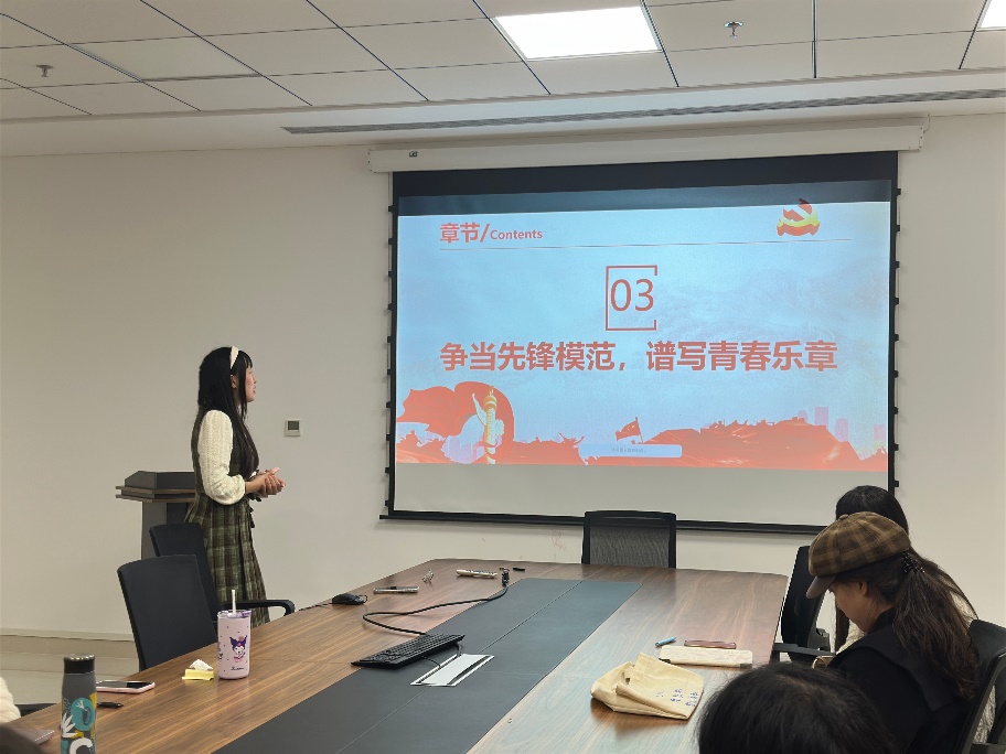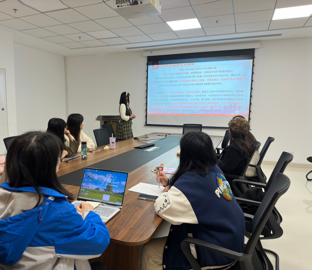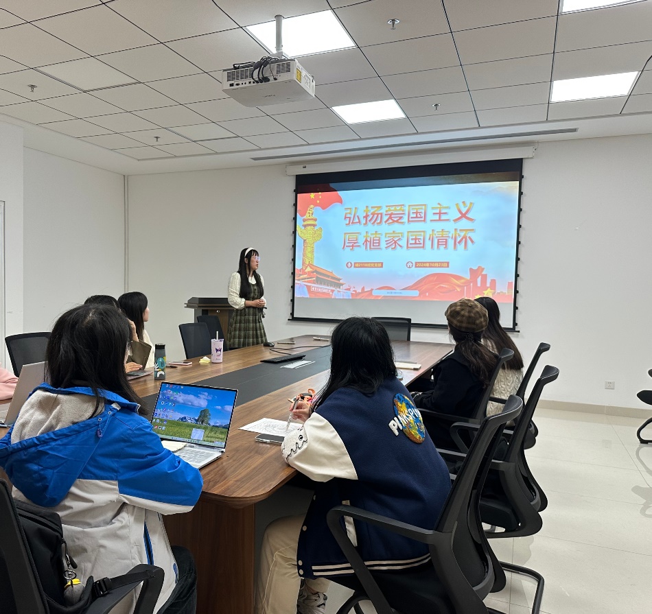 为庆祝中华人民共和国成立75周年,弘扬爱国主义精神,传承红色基因,激发党员的爱国热情,传承爱国主义精神与民族精神,2024年10月23日晚,外国语学院硕2118班党支部在涵英楼5-5077会议室举办了“弘扬爱国主义,厚植家国情怀”主题组织生活。本次活动由支部书记于欣欣主持,支部全体成员积极参与。