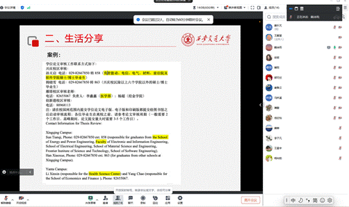 会议进入第二部分,支部成员分享实习/留学生活,增进相互学习和启迪。首先,戴诗雨同志分享了她的翻译实践经验。她的项目任务是为西安交通大学图书馆编写门户网站的翻译,翻译内容涉及功能介绍与使用指南,总计约15000字,时间要求严格。她指出,项目难点之一在于学校标示牌的英译,如教学楼、公共休息区、食堂、咖啡厅等。戴诗雨总结了翻译过程中所遇到的困难与挑战,强调了与导师及翻译中心沟通的重要性,以确保翻译质量并减少错误。此外,她还分享了在翻译之前做好时间评估与规划的经验,这不仅提升了项目的协作能力,也帮助自己在团队中发挥更大的作用。