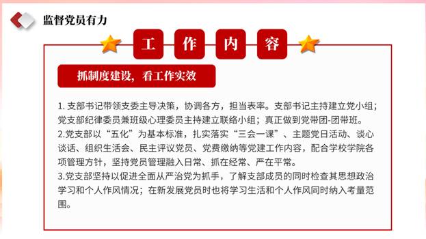 随后,支部书记安欣宇带领支部成员学习了习近平总书记关于推进党纪学习教育常态化长效化的重要讲话,并向大家分享了相关党纪教育学习资源。2024年10月,习近平总书记在安徽考察时强调:“推进党纪学习教育常态化长效化,引导党员干部真正把纪律规矩转化为政治自觉、思想自觉、行动自觉。”守纪律是党员应有的自觉修养。党纪学习教育开展以来,习近平总书记多次在重要场合对加强党的纪律建设予以强调和阐释。此次学习不仅加深了支部成员对党纪国法的理解,更激发了同学们作为党员的责任感和使命感。支部成员郑乔尹提到,我们将牢记总书记的教诲,把纪律规矩内化于心、外化于行,以实际行动诠释忠诚干净担当,为党的伟大事业添砖加瓦,贡献力量。